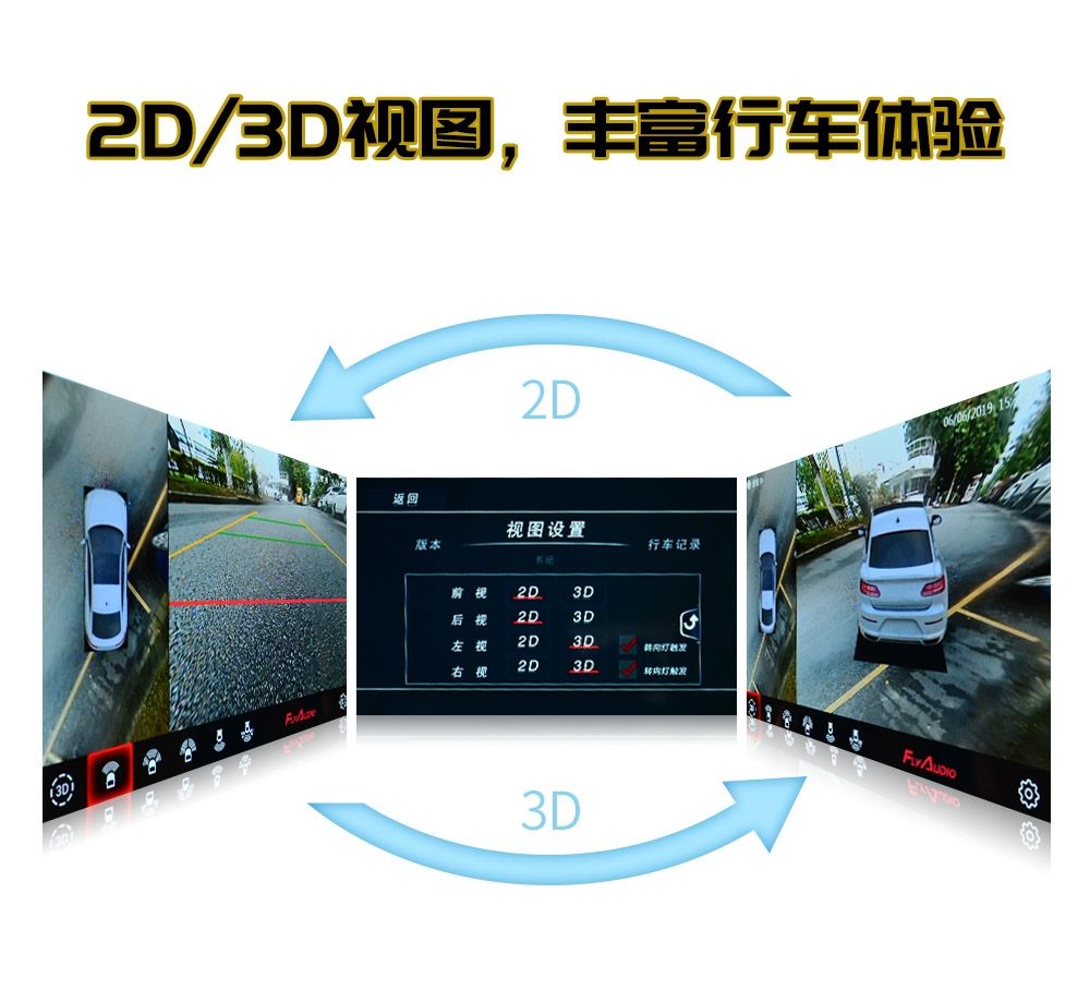 这时360°全景产品的必要性就凸显出来了,这类产品的出现很大程度上缓解了盲区在行车中的隐患。约从2012年360°全景产品进入后装市场开始,产品发展也从2D全景到3D全景、从功能时代到场景时代稳步发展至今。飞歌导航此次带来进阶版360°全景行车辅助系统,三维立体模式、旋钮操控、一键自动拼接、内置轨迹等,赋予产品更多便捷又实用的功能,让新手小白都能随心所欲驾享旅途!