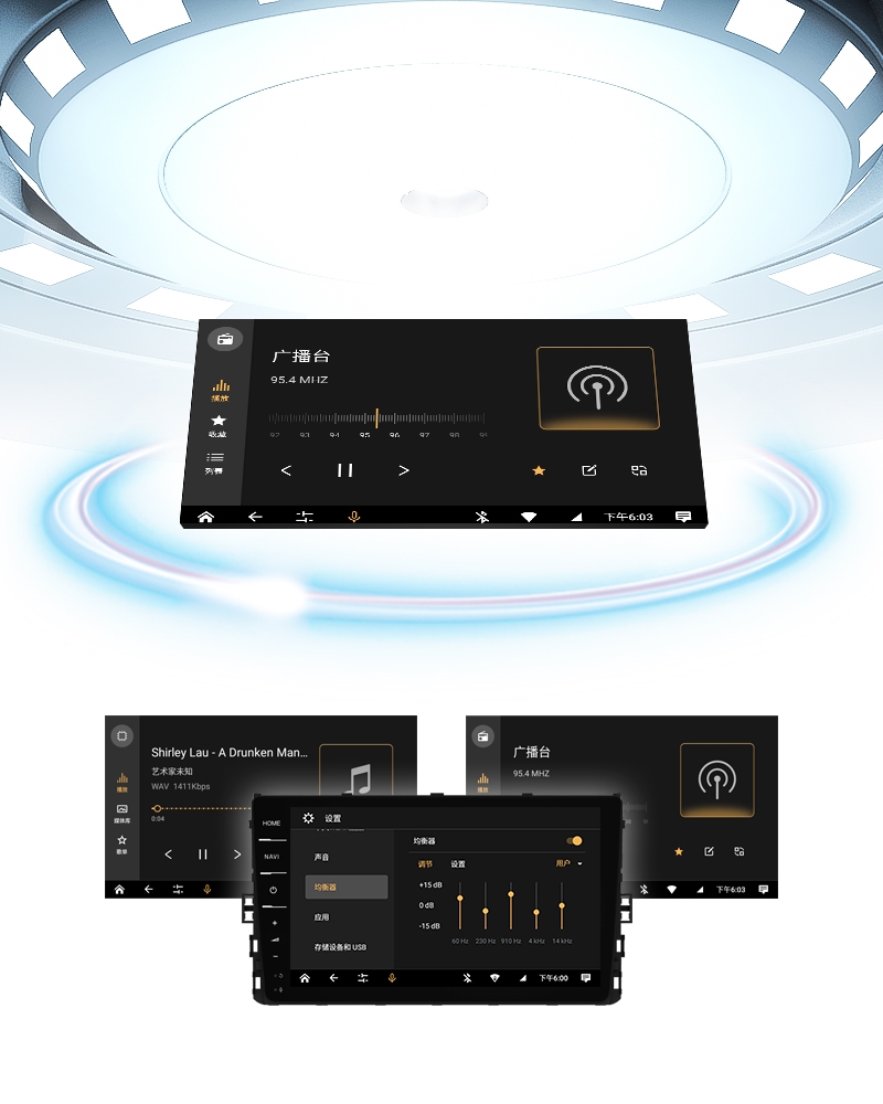 深度定制智能安卓车机系统,原厂高配风格UI设计,清晰易懂,操作方便