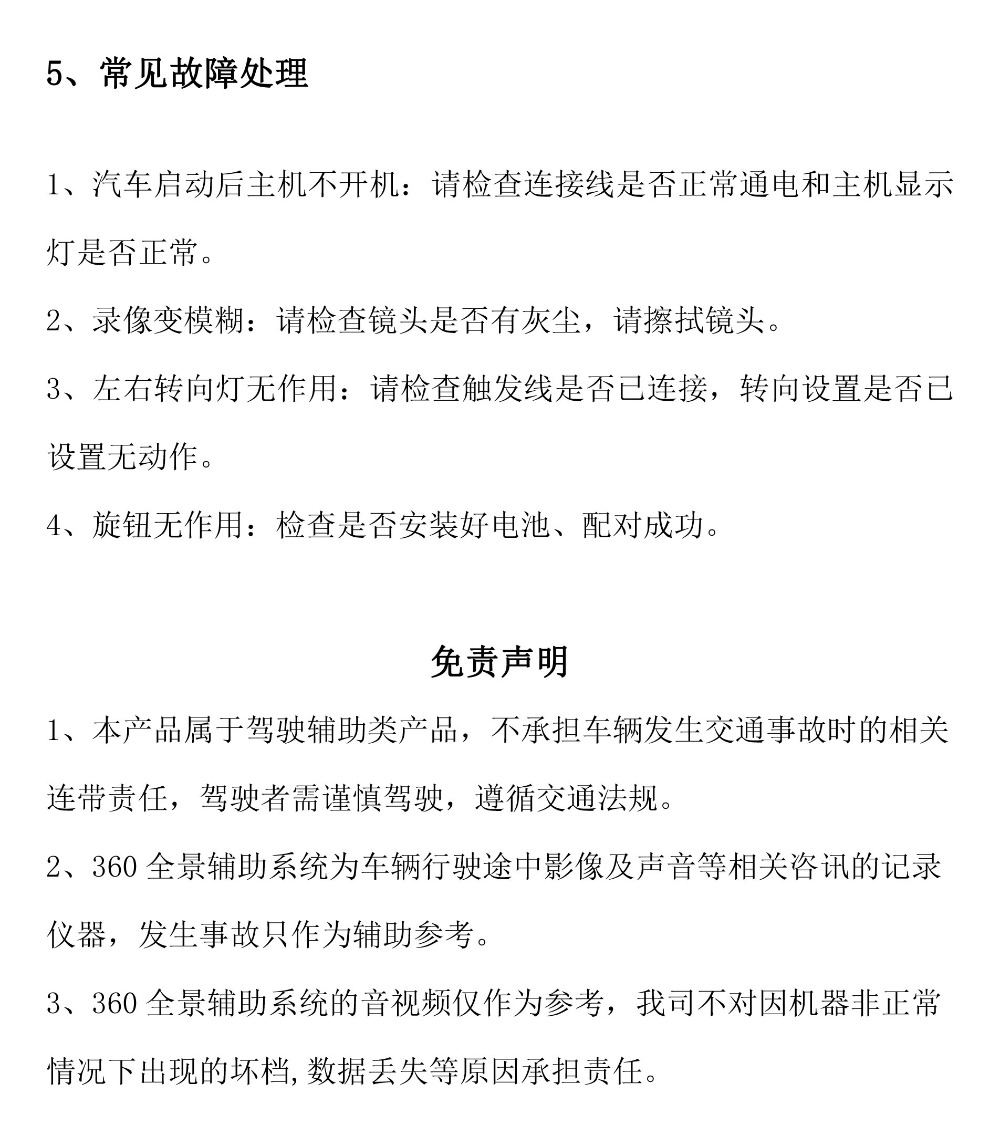 Flyaudio 360°全景行车辅助系统——SV1 青春版使用说明书
