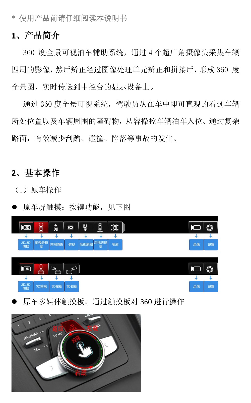 Flyaudio360°全景行车辅助系统-奥迪使用说明书(3D4)