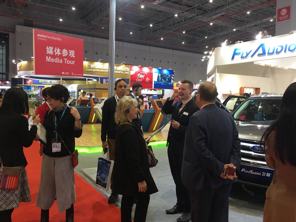 FlyAudio飞歌在吸引众多观众的同时,也迎来了行业领导以及国际媒体的眼光。展览会主办方——中国机械工业集团总经理韩总以及丁宏祥副总一行人、国际媒体参观团、国家工信部相关领导也来到飞歌展位,现场体验FlyAudio飞歌最新研发的车载智能娱乐系统。与此同时,对于飞歌在汽车电子行业取得的研发成果,中国机械工业集团领导以及国家工信部各领导都予以了高度评价,盛赞企业的发展产品研发能力是不可或缺的因素!