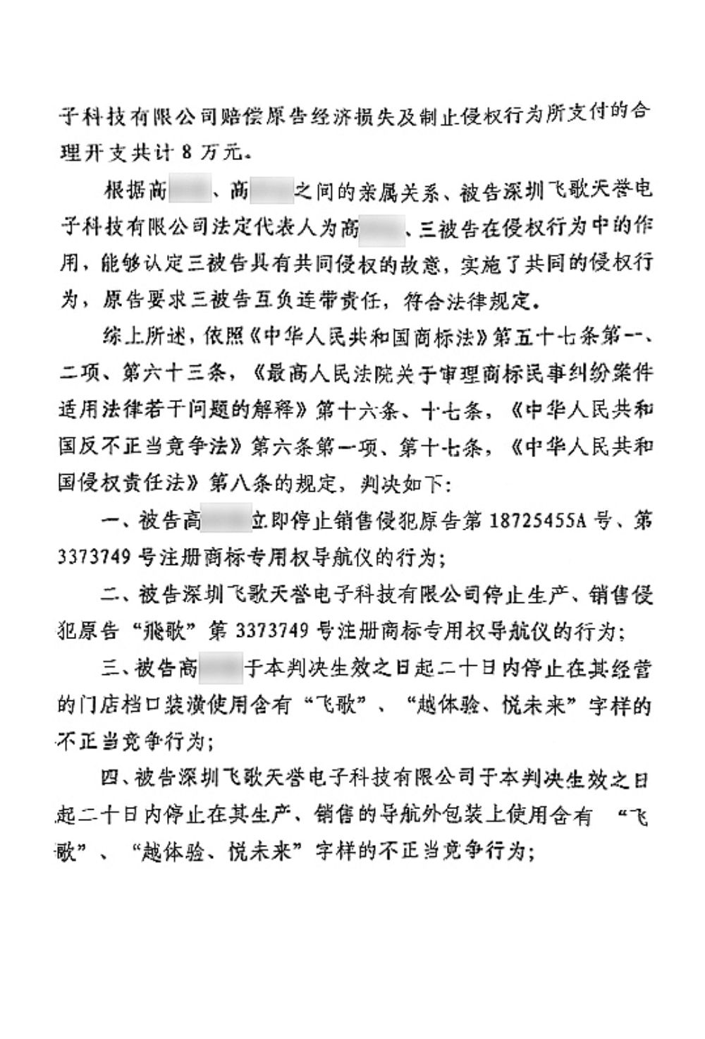 判决深圳飞歌天誉电子科技有限公司、高某某(女)及高某某(男)