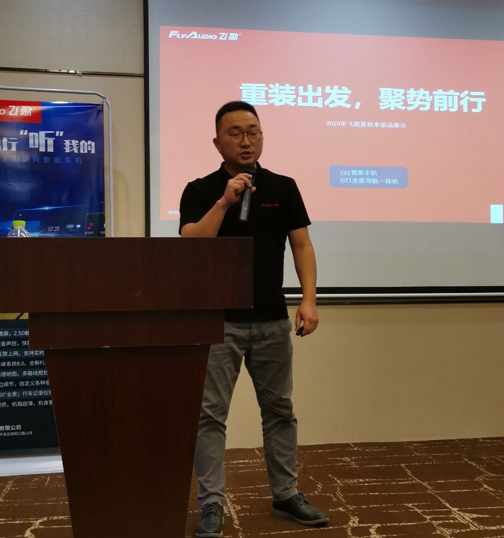 会议开始,飞歌全国渠道经理梁剑鸿上台致词,向广大合作伙伴阐述了飞歌公司今年以来发展取得的成绩,以及接下来产品动态,指明渠道发展新路径,给市场带去信心。2019年,市场和企业都在寻求改变,在经历了飞速发展的阶段后,准入门槛低造成市场逐渐趋向饱和,而品牌化、差异化等成为了检验市场的关键一环。飞歌始终坚持品质为上,不改初心,力求给车主带来功能实用、质量过硬的产品。