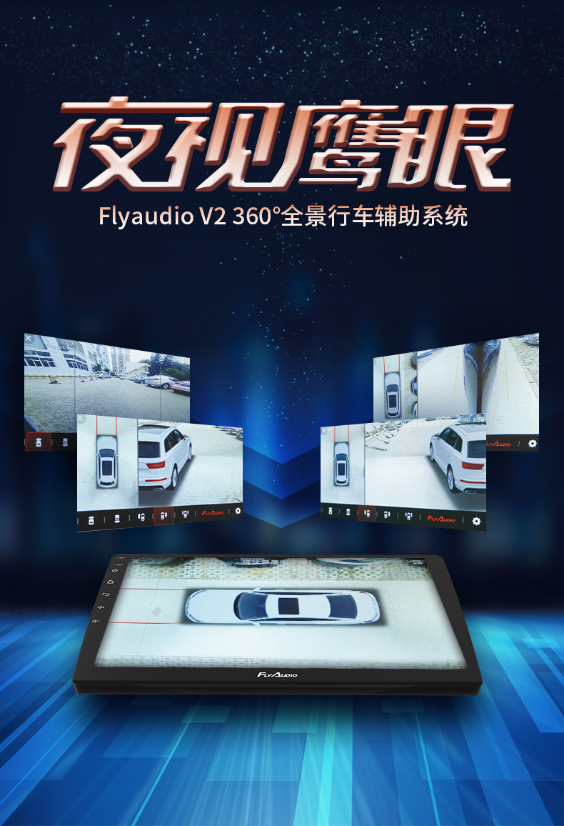你还在考虑加装什么品牌的行车记录仪吗?Flyaudio V2 360°全景车周四个摄像头(前视/后视/左视/右视)同时“担任”行车记录功能,形成全方位摄录的四路行车记录仪,实现无盲区记录行车过程中的每一个瞬间。